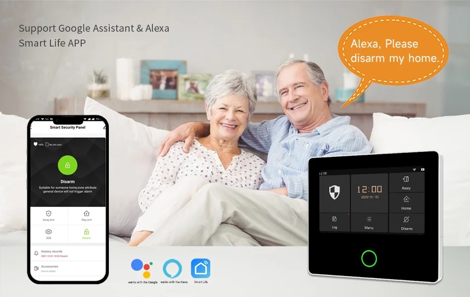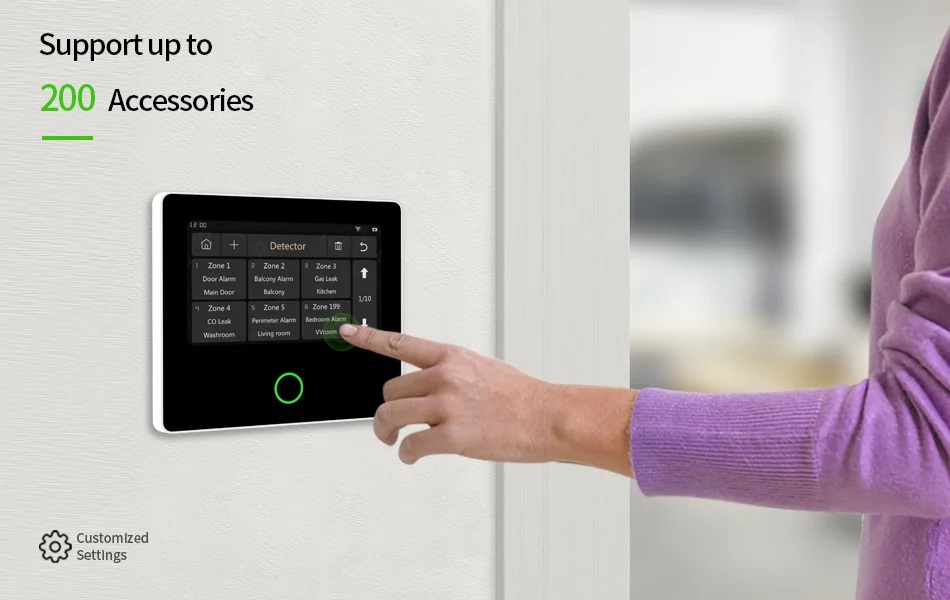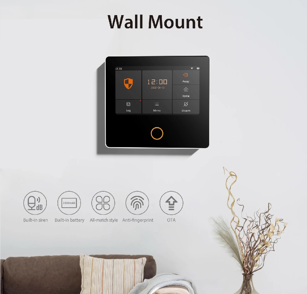 It has a convenient touch screen and back up rechargeable battery with a capacity of 1500mAh. It supports Wi-Fi connection as well as GSM network for phone calls and sending messages. In addition, through the Tuya Smart & Smart Life application you are given the possibility to control the alarm system remotely from your smartphone device from anywhere in the world. It is equipped with a built-in siren for an audible alarm directly from the central panel, while, thanks to the integrated microphone, it allows two-way voice and sound transfer. Its installation can be done either wall-mounted with screws or table-top with an integrated kickstand.