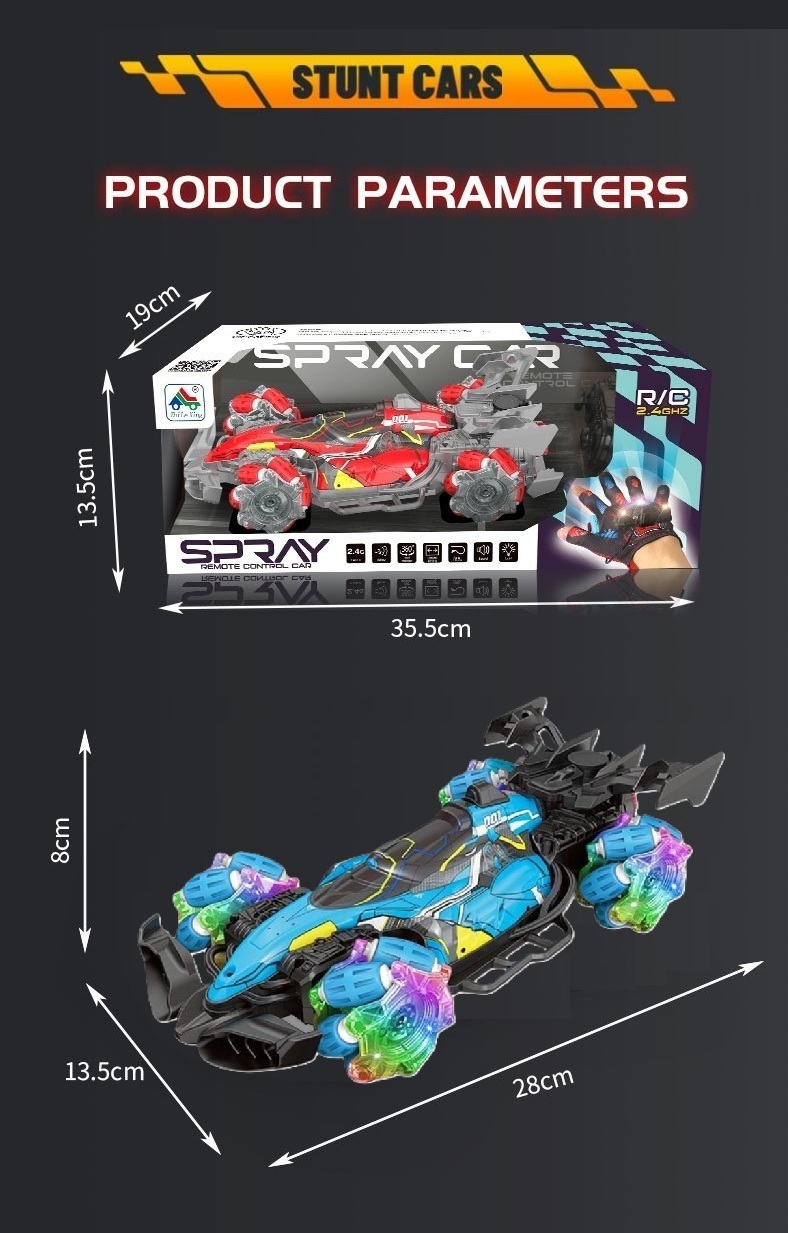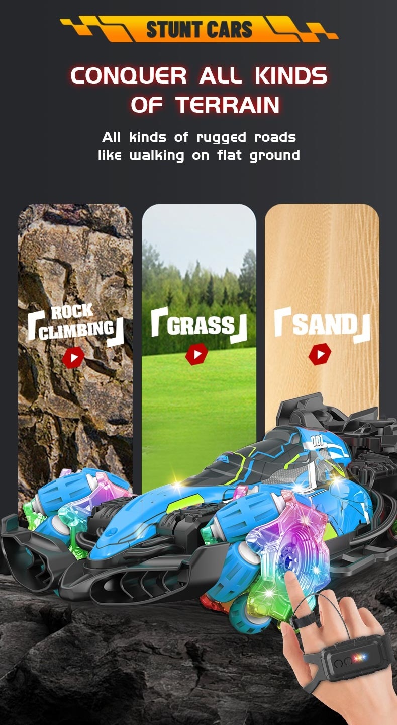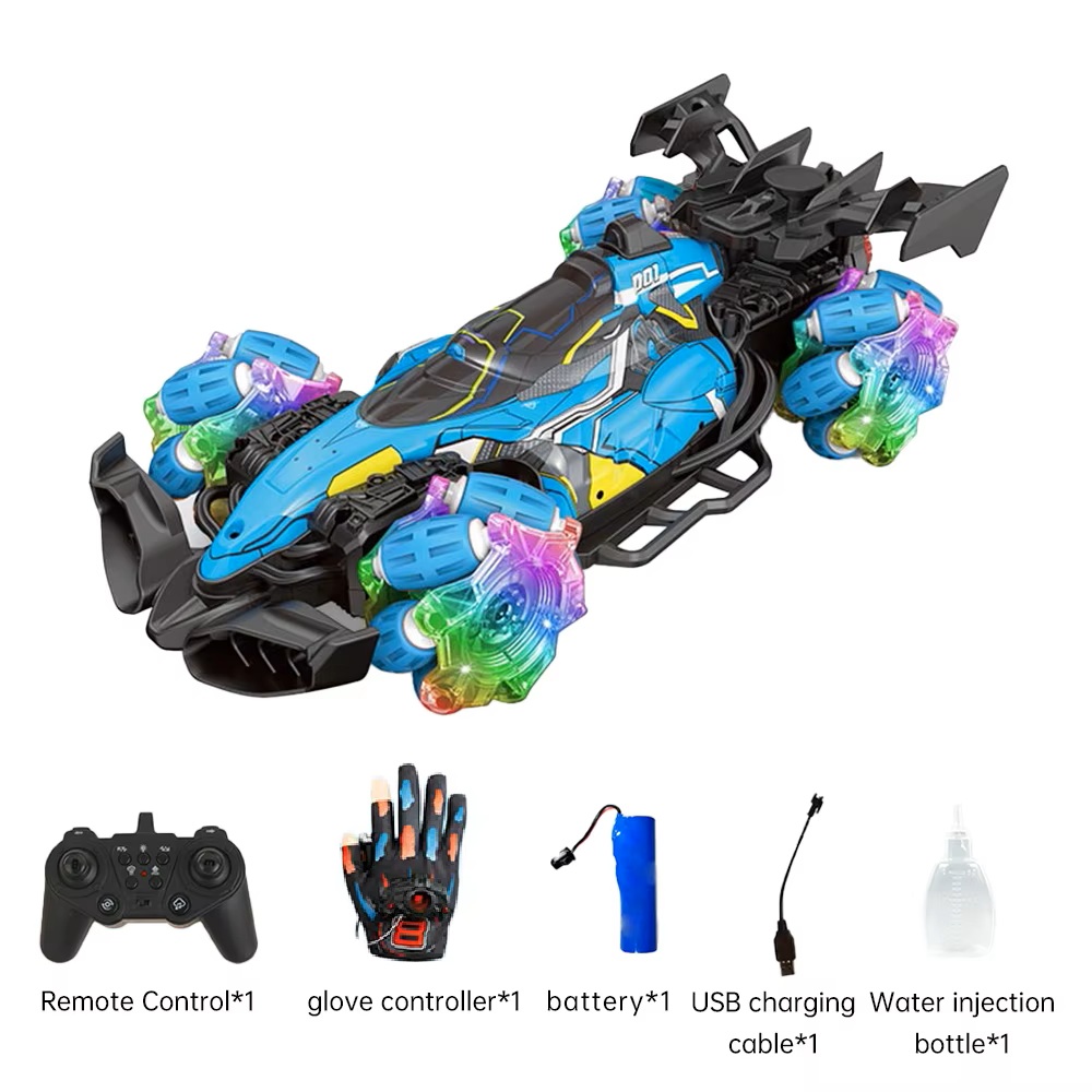 Τηλεκατευθυνόμενο Αυτοκίνητο Stunt 1/16 BLUE JHBPH11050BL Stunt car MUSIC SPRAY GESTURE New 2.4g Finger Watch Remote Control Glove Car With Light Music Spray Gesture Sensing Stunt RC Drift Formula