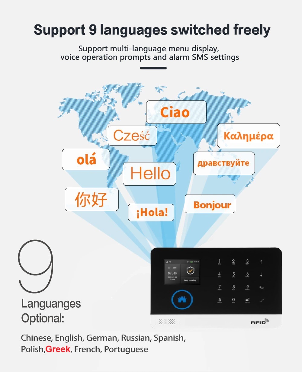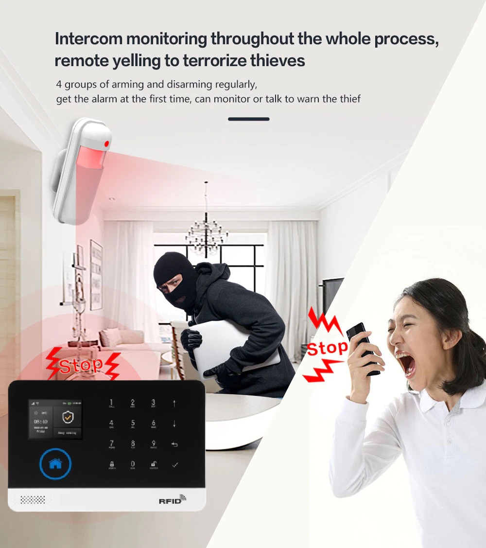 Wi-Fi + GSM alarm system set has the function of voice control. It is compatible with Amazon Alexa/Echo and Google Home, Wi-Fi connection, compatible and only works with 2.4GHz bandwidth
