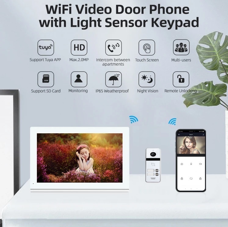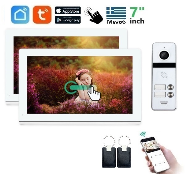 Σετ θυροτηλεόρασης Joytimer 4 καλωδίων με οθόνη Wi-Fi TUYA Smartlife APP 2x WHITE HD 7" 2MP IC CARD | 66730W-64207C2W