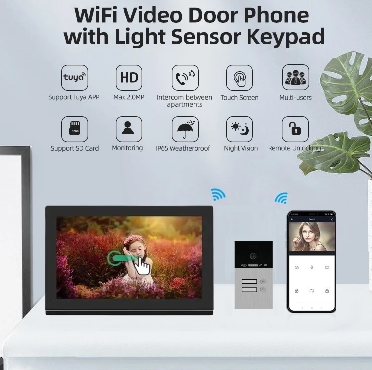 Σετ θυροτηλεόρασης Joytimer 4 καλωδίων με οθόνη Wi-Fi TUYA Smartlife APP 2x WHITE IC CARD HD 7" 2MP | 66730W-64253IC2S