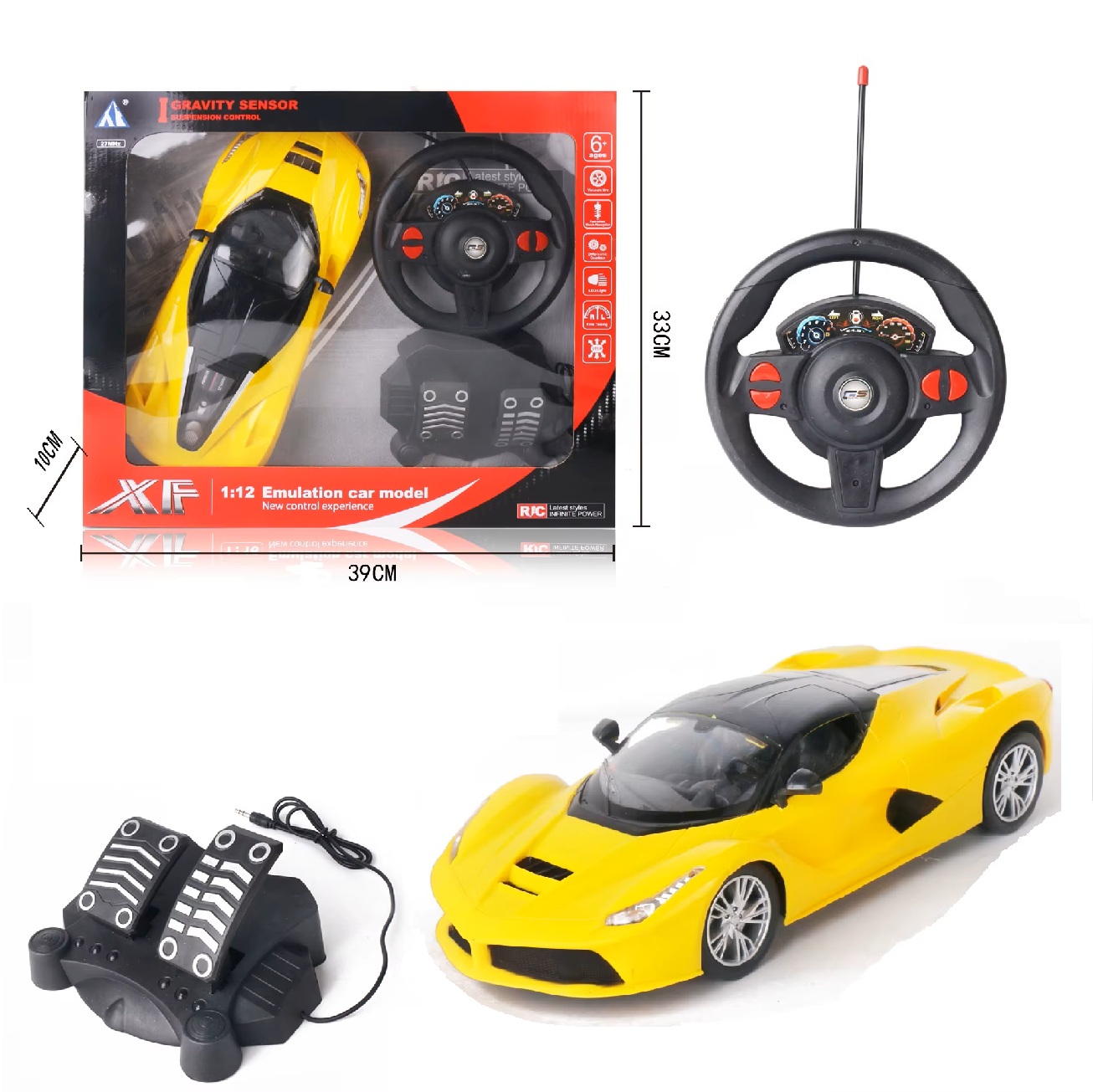 Τηλεκατευθυνόμενο FERRARI Αγωνιστικό με Φρένο-Γκάζι Επαναφορτιζόμενο Steering + Pedals RC car YELLOW